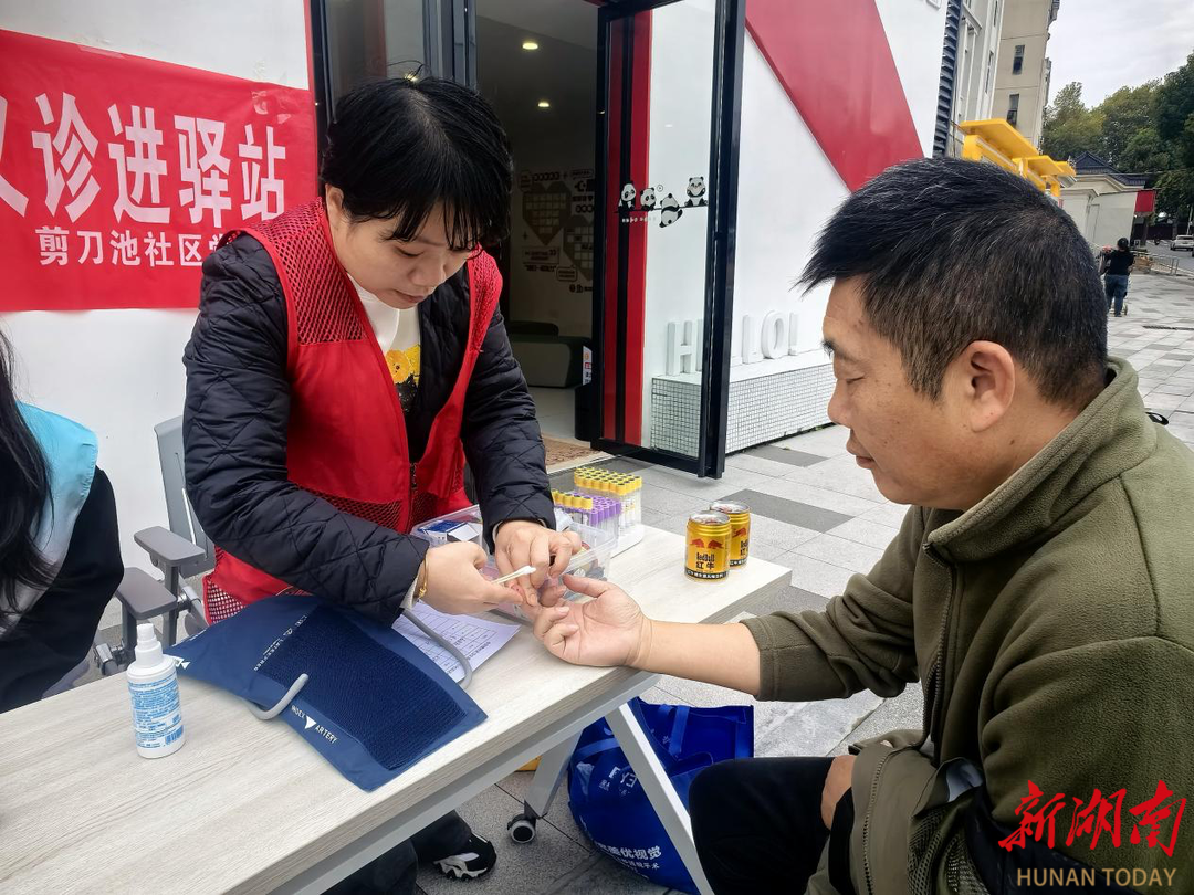 湖南日报·新湖南客户端11月18日讯(通讯员李欢)近日,岳阳市剪刀池社区携手岳阳楼卫生服务中心,将暖心服务搬进辖区暖心驿站,一场“义诊进驿站,关爱暖人心”公益活动温情启幕,为奔波在一线的快递员、外卖骑手、环卫工人等户外劳动者,送上“触手可及”的健康守护。