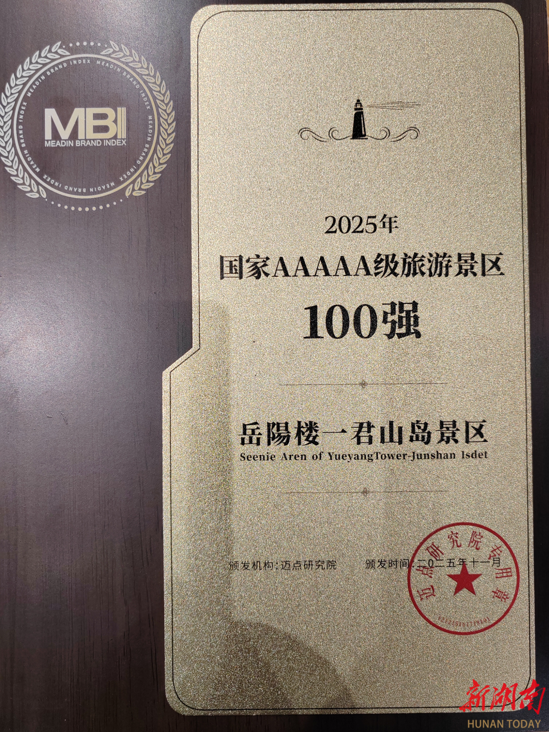 本次迈点研究院发布的5a景区品牌传播力榜单,通过搜索指数、媒体指数、点评指数、运营指数四大核心维度,全面量化景区在互联网领域的品牌传播效能,其权威性与公信力广受行业认可 。岳阳楼君山岛的上榜,不仅是对岳阳文旅公司品牌建设成果的有力彰显,更是对其在文化传承、服务提升、运营创新等方面不懈努力的高度肯定。在文旅行业进入“运营为王”的新时代背景下,这一荣誉将进一步激励岳阳文旅公司持续深耕文化内涵、优化游览体验,为推动区域文旅产业高质量发展注入新动能。