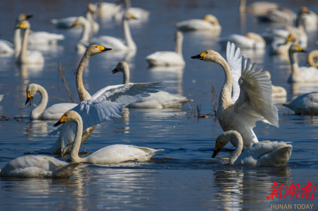 霜降过后,岳阳市屈原管理区的晨雾里,便多了群灵动的身影。以东古湖为中心,数万羽候鸟铺展成流动的画卷,让每一个守望者的期待,都在寒风暖阳中热烈绽放。我便是这守望者中的一员,六年来,数着日历等待小天鹅的归期,再欢送小天鹅北去早已成了工作生活的仪式。