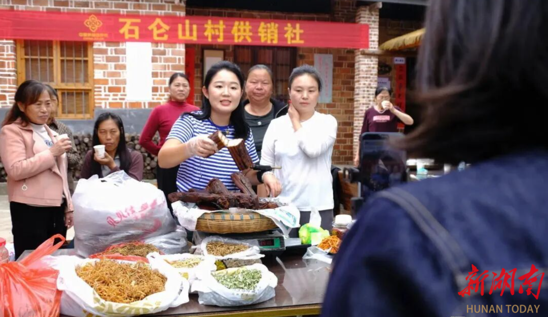 “咱们石仑山的腊肉都是村民自家熏制的,味道正宗!”村头的直播间里,汨罗市文旅集团直播团队主播阳婕妤正热情推介着村民自产的腊肉、干菜等农副产品。流动供销直播车走进石仑山村,为农产品扩销路,一场直播销售额可达5000到10,000元。村级供销社聚焦助农为农,通过线下代销、直播带货等方式,已销售农产品超58万元。