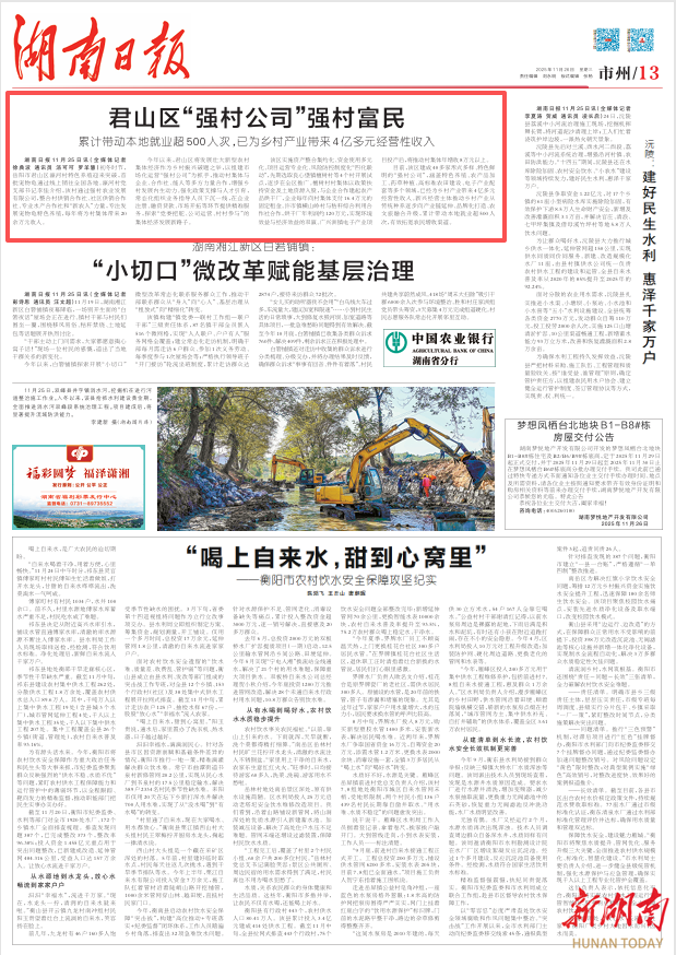 今年以来,君山区将发展壮大新型农村集体经济作为乡村振兴破题之举,以组建市场化运营“强村公司”为抓手,推动村集体与企业、合作社、能人等多方力量合作,增强乡村发展内生动力。强化政策支撑与人才引育,常态化组织业务指导人员下沉一线,在企业注册、融资贷款、市场开拓等环节提供精准服务,探索“党委把舵、公司运营、村村参与”的集体经济发展新路子。