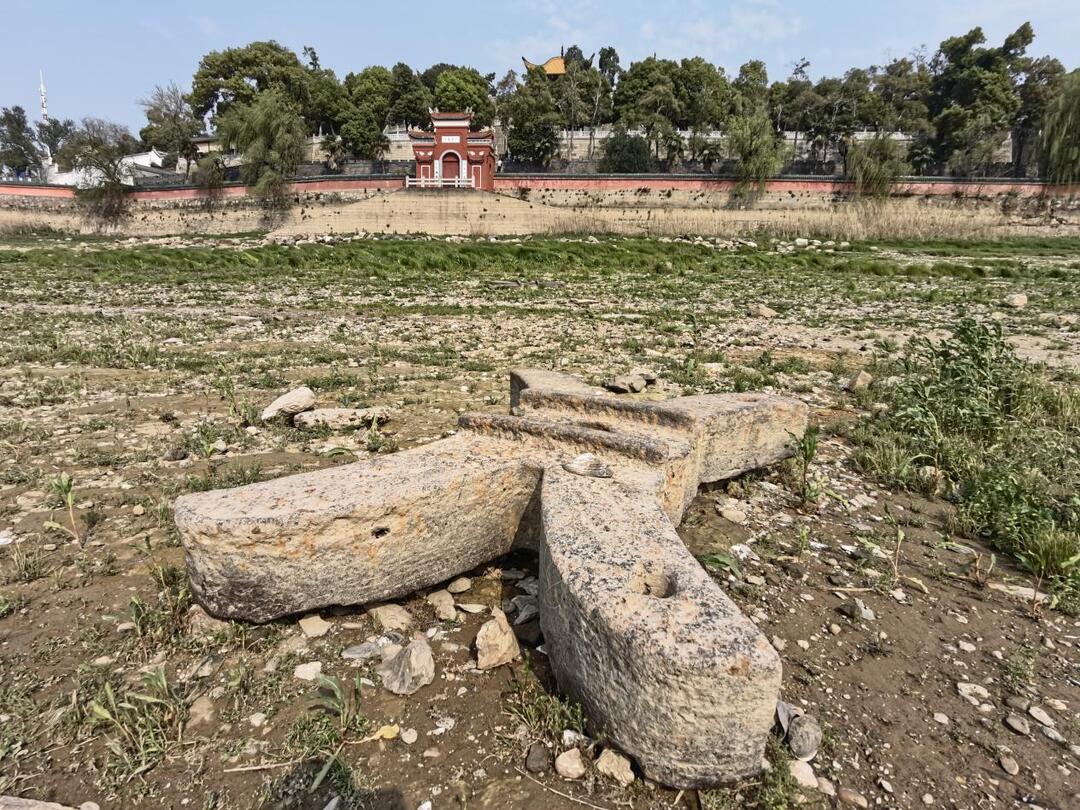 初见铁枷,是在壬寅年冬的一个晴日。湖水退至一年中最浅处,湖床就好似被打开的历史腹腔,袒露出那些不为人知的过往。岳阳楼前,《岳阳风土记》里记载的 “冶铁数枚”,终现真容。那些重达数千斤的黝黑铁器,如千年玄龟,静伏沙碛之上。在我眼中,这些铁枷绝非寻常的时光印记。它们曾承载楚地奇幻神话,熔铸南宋烽火硝烟,更托举无数尘世浮沉的魂灵。