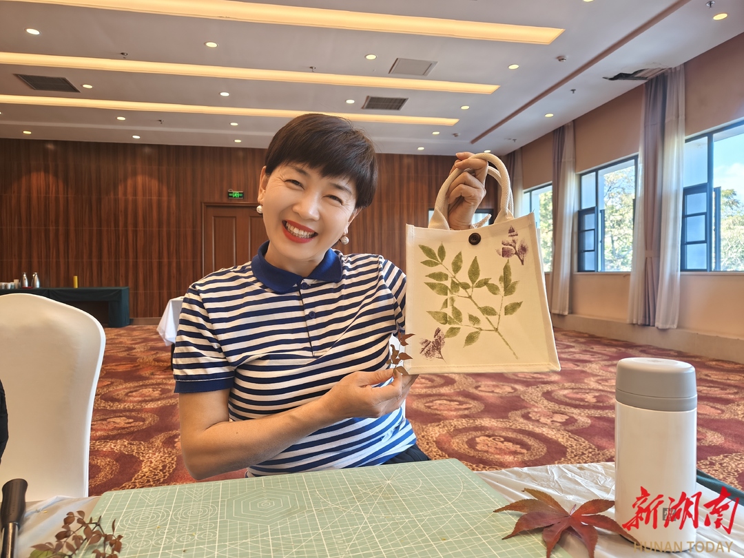 我发现长沙劳模刘婷专注俯身,像寻宝般与每朵花儿、每片叶子窃窃私语。她也觉得,最治愈的莫过于捶打的瞬间。“咚、咚、咚”的声响如同古老仪式,隔着棉布,看汁液缓缓渗出浸润,心中充满奇妙的期待。当她小心翼翼揭开叶片时,叶脉的纤维、花瓣的渐变、边缘的锯齿,都清晰地复刻于帆布之上。它仿佛不是印迹,而是自然的馈赠——带着植物纤维的肌理与草木的清香。很自然,这不仅是色彩的转移,更是对生命的温柔低语。益阳劳模王东晖感喟道,手工拓印,看似简单,实际上是一个技术活。亲手把大自然的美镶嵌在布袋上,既新学了技能,又愉悦了心情。