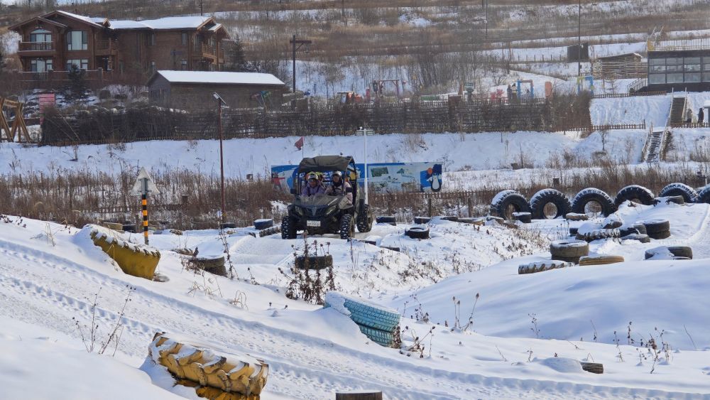 12月4日,在长白山华美胜地旅游度假区,游客体验雪地机车项目。新华社记者 唐铭泽 摄