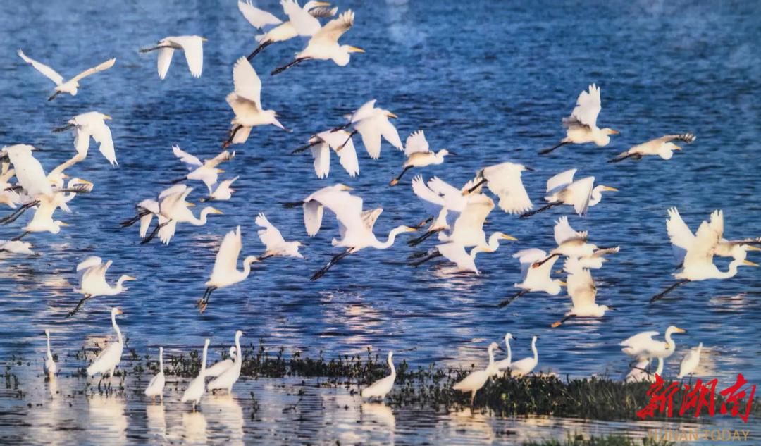 低矮的稻茬浸没在水里,朝阳从田埂上铺过来,在水里织成一片彩色的云锦。稻田上方的天空,有着如同贝加尔湖的深蓝。天鹅们从洞庭湖畔的芦苇荡里苏醒后,便在深蓝的天空与灿烂的朝霞里飞向了这片农田。洁白的翅膀划过蓝色的天宇,然后像一朵朵跌落的白云降落在了水田的云锦里。领头的天鹅,将头埋入翅下,细细地整理羽毛,那洁白的羽茎根根剔透,不染纤尘,仿佛那数千公里的风沙、雨水与疲惫,都不曾在其上留下痕迹。其他的天鹅们环绕在她的周围,有的静静浮游,水面划开无声的“v”纹;有的将头回转,埋入背羽,享受阳光的抚照;大部分的是将头扎进水里,寻找可食用的物料。在这一刻,所有旅途的艰辛——对抗气流的挣扎、穿越黑暗的恐惧、饥寒交迫的困顿——似乎都被这温柔的晨光吸收、融化了。