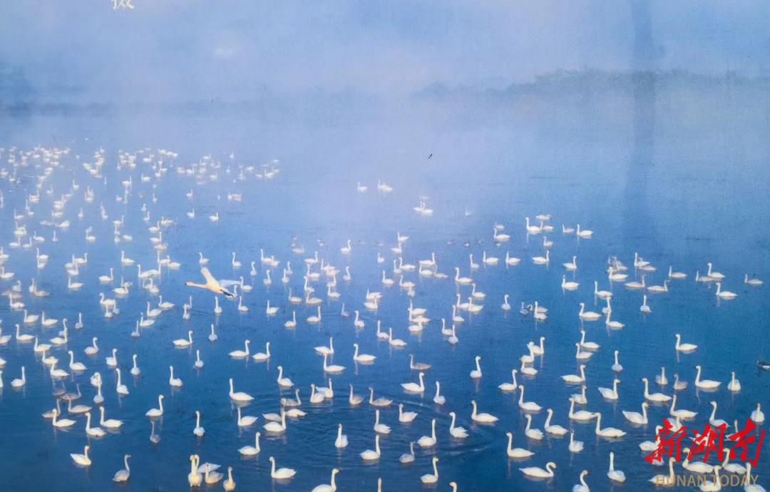 实际上,天鹅们此时正在洞庭湖边的芦苇荡里酣畅地睡着,洁白有力的翅膀包裹着健硕的身体,在被风轻轻拂过的芦苇丛里,甜美地睡着。或许,在它们的梦里,还有贝加尔湖深蓝的湖水在轻轻荡漾。