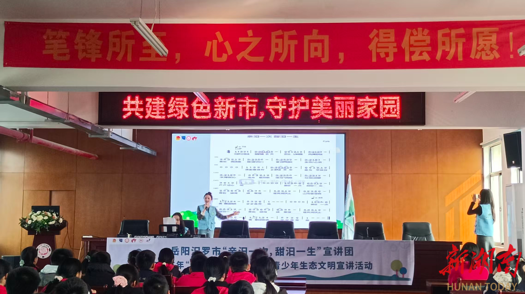 湖南日报·新湖南客户端12月14日讯(通讯员 姜金玉)冬日的汨罗市任弼时芙蓉学校暖意融融,25届汨罗市选调生携手湖南师范大学研究生志愿者组成的“亲汨一次甜汨一生”宣讲团,在这里开启首站生态文明宣讲。以《共建绿色新市,守护美丽家园》为主题的沉浸式环保课堂,让环保理念伴着青春活力浸润童心。